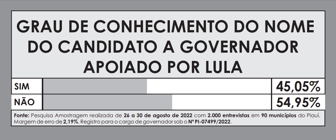 O Instituto Amostragem ainda mensurou qual o grau de conhecimento do nome do candidato apoiado pelo ex-presidente da República, Luiz Inácio Lula da Silva (PT), no Piauí.