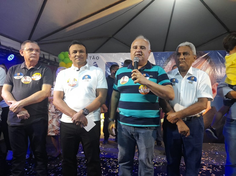 Os vereadores Luís Lima e Geraldo Paz; o prefeito de Sigefredo Pacheco, Murilo Bandeira; e o agente da polícia Civil Baker Martins acompanharam o candidato e falaram sobre a trajetória de vida e de luta política de Fábio Abreu.