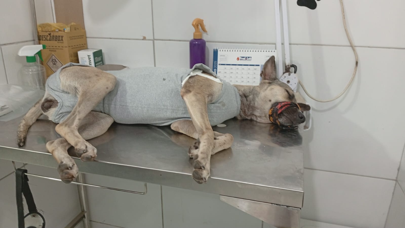 Conforme o Dr. Fabio Borges, médico veterinário da Pet Cam, não foi possível realizar a sutura do ferimento pois o mesmo já possuía tecido necrosado, o que indicava que a agressão não teria ocorrido na manhã do dia em que foi atendida. Ao todo, após análise, foi observada a presença de 04 perfurações.