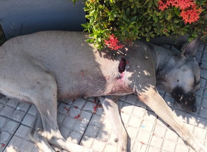 Cadela é encontrada esfaqueada. Adote CM pede ajuda.