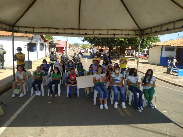 O evento contou com a participação de secretários, diretores, alunos e funcionários da gestão municipal, além da participação da Polícia Militar.