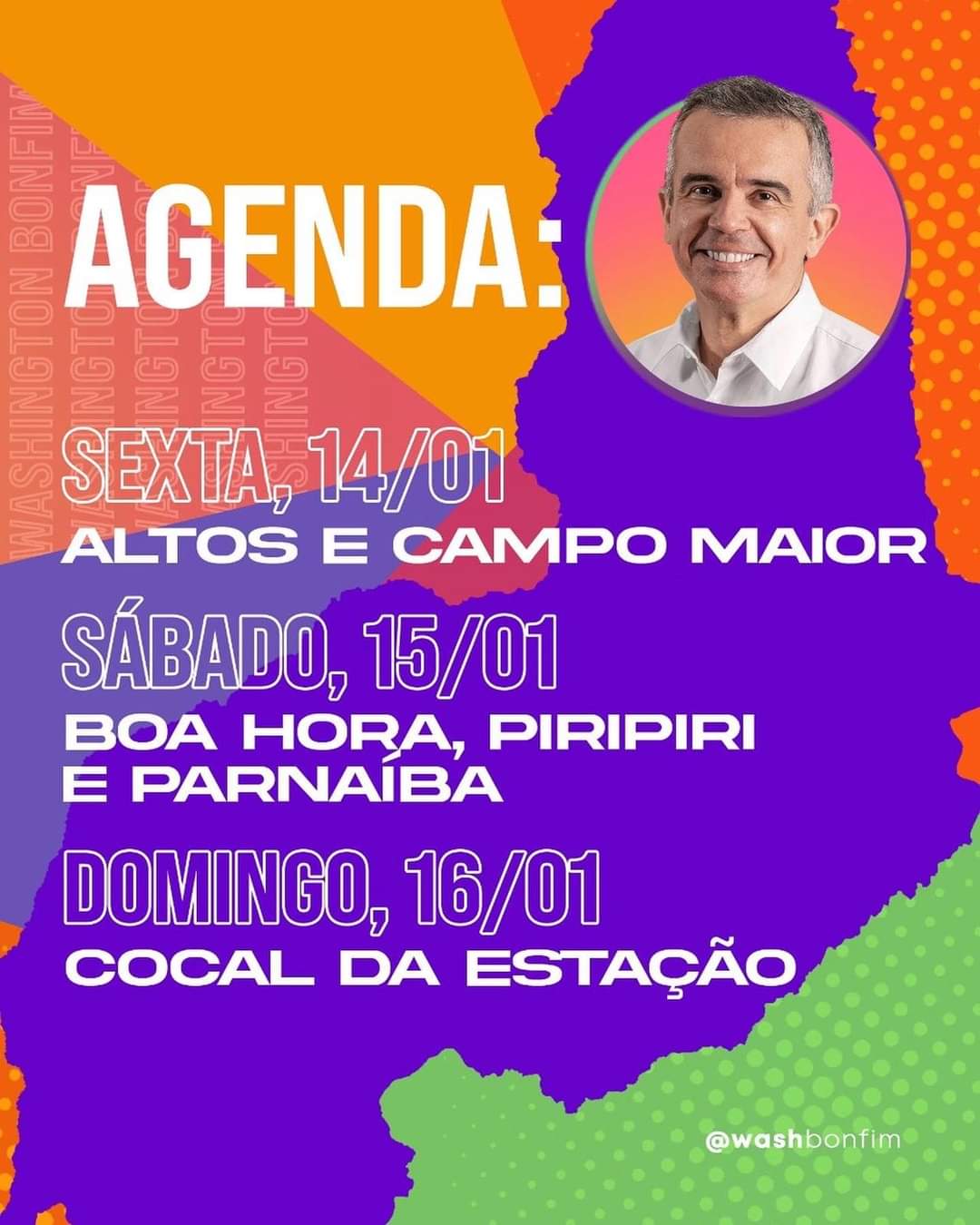 Nesta sexta-feira (14), Washington Bonfim, pré-candidato a governador estará hoje à noite em Campo Maior, para uma reunião com lideranças, onde discutirá pautas importantes ligadas a sua candidatura e a projetos de relevância social.