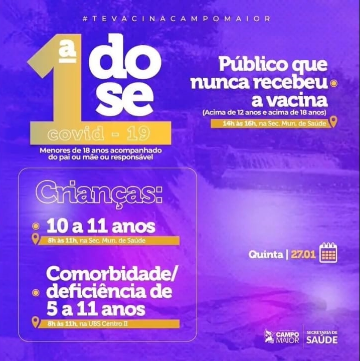 A prefeitura de Campo Maior, através da Secretaria Municipal de Saúde, continua a campanha de vacinação contra a COVID-19 nesta quinta-feira (27).
