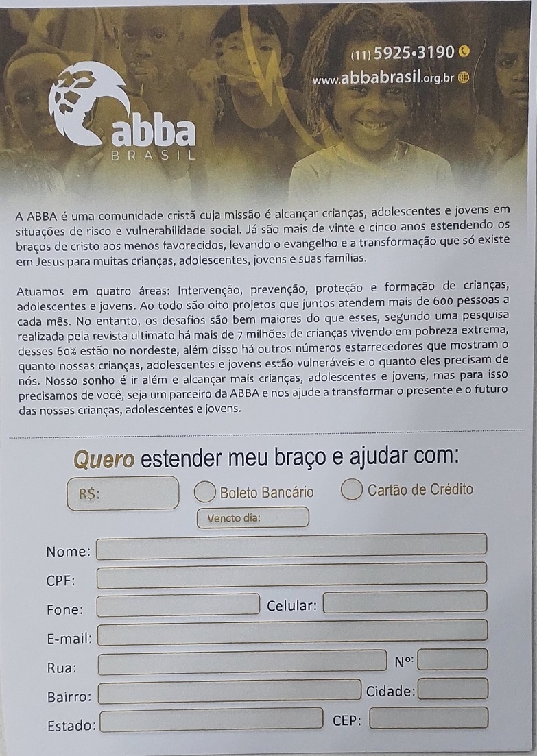 Formulário a ser preenchido por quem desejar doar