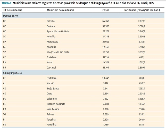 Com 2.308 casos prováveis, Teresina está entre as dez cidades brasileiras com as maiores taxas de incidência de chikungunya em 2022. Os dados são do Boletim Epidemiológico divulgado pelo Ministério da Saúde nesta segunda-feira (17).