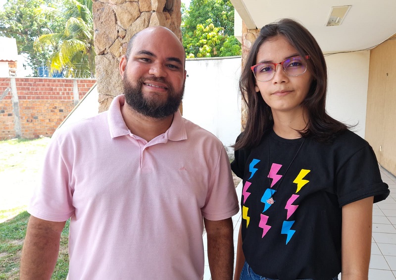 Professor Ernani Júnior e aluna Adassa explicaram sobre o corte de bolsas durante entrevista. Foto: Reprodução Portal Fato