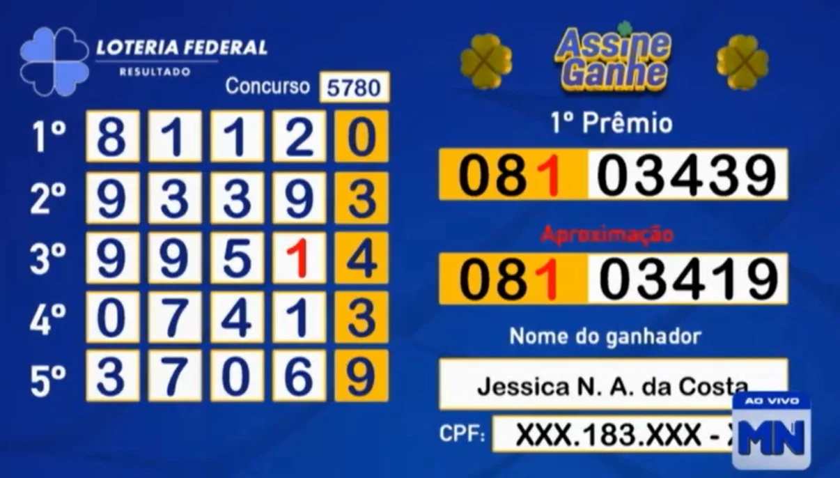 O auditor independente Ribamar Martins autorizou o sorteio e os números foram divulgados aos telespectadores. O primeiro prêmio, foi um cartão de débito no valor de R$ 10 mil, e a ganhadora foi Jessica N. A. da Costa, dona do número 08103419, e do CPF XXX.183.XXX-XX.