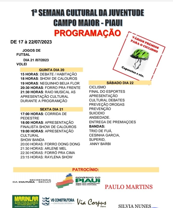 Foi divulgada a programação completa da 1ª Semana Cultural da Juventude em Campo Maior. O deputado estadual Paulo Martins destacou aspectos importantes do evento durante entrevista ao Portal Fato.