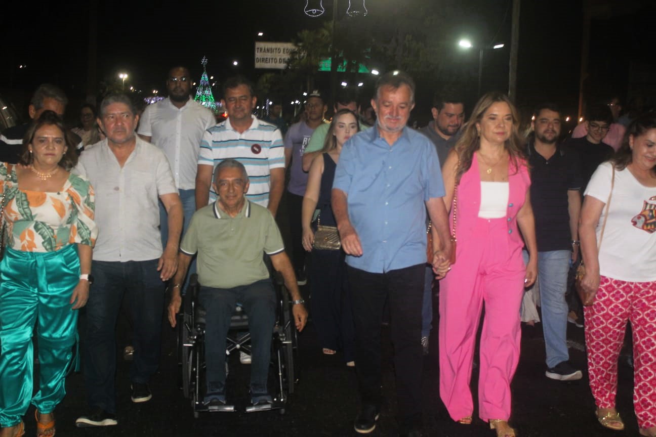 O prefeito municipal Joãozinho Félix e comitiva saíram do contorno do São Luís e caminharam por toda a avenida Santo Antônio, seguidos da banda Honório Bona, até a praça da Liberdade, onde se deu a abertura das celebrações natalinas e o recebimento de um novo veículo para a Saúde. Ainda no local, o gestor e outras lideranças fizeram pronunciamento sobre a inauguração.