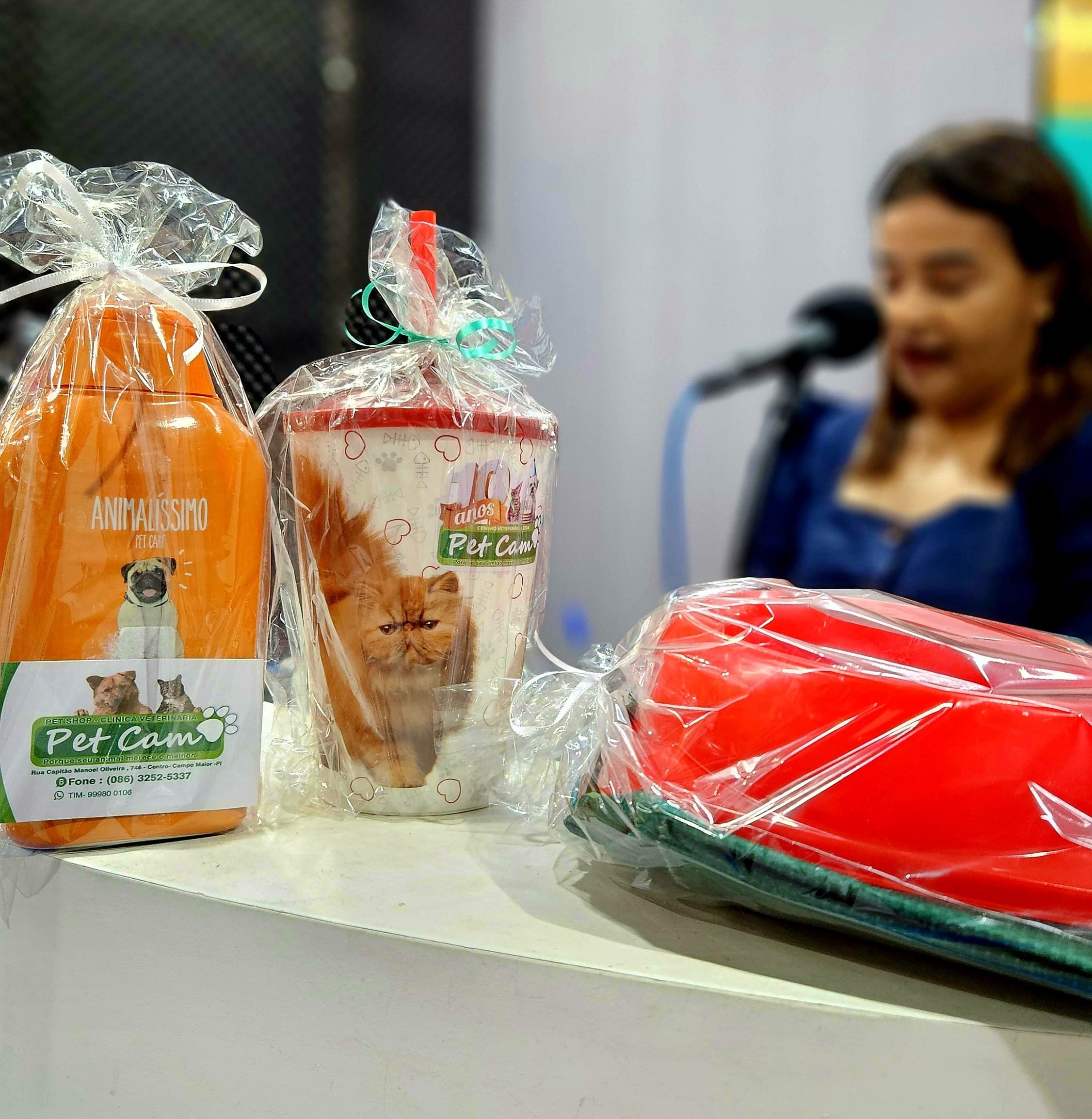 Sorteio de Brindes oferecidos pela PetCam para os ouvintes.