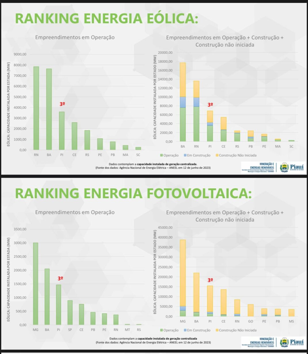 O Piauí ocupa atualmente o terceiro lugar do país na produção de energia eólica e de energia fotovoltaica, segundo relatório do mês de junho da Agência Nacional de Energia Elétrica (ANEEL).