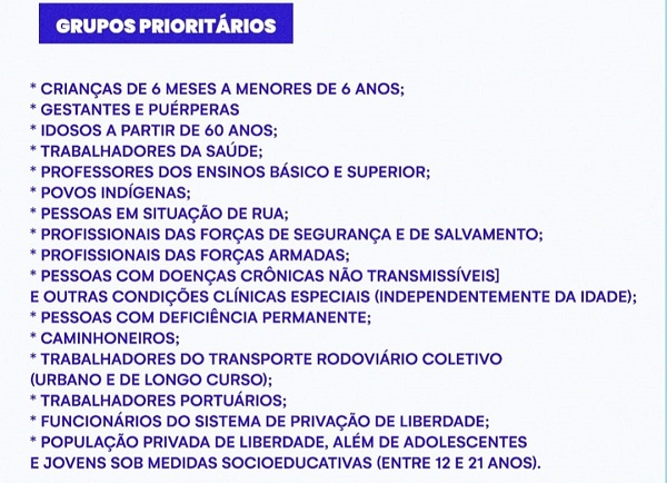 É necessário portar Cartão do SUS e Cartão de Vacina.
